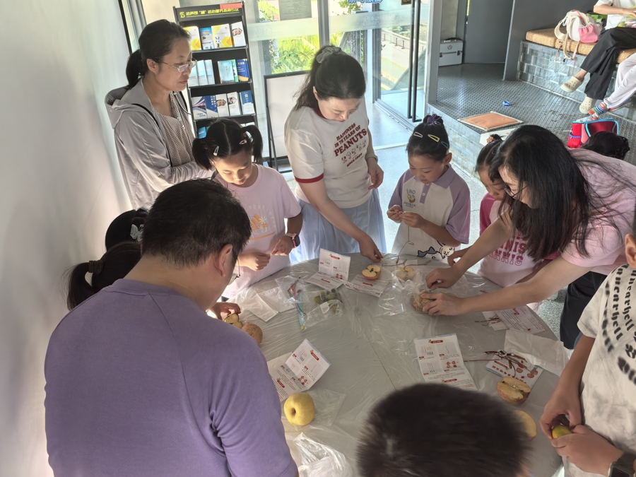 依托杨树浦发电厂遗迹公园,电力科普是驿站的特色品牌内容,在这里游客可以通过工业遗存触碰百年工业的脉动。长假中,来自上海电力大学的老师为小朋友们讲了一堂生动的发电科普课,“水果除了吃,还能做什么?”孩子们通过趣味实验得到的答案是——水果还可以发电。孩子们在亲手操作实验中,不仅用水果点亮了LED灯,更是点亮了对科学世界的无限好奇。