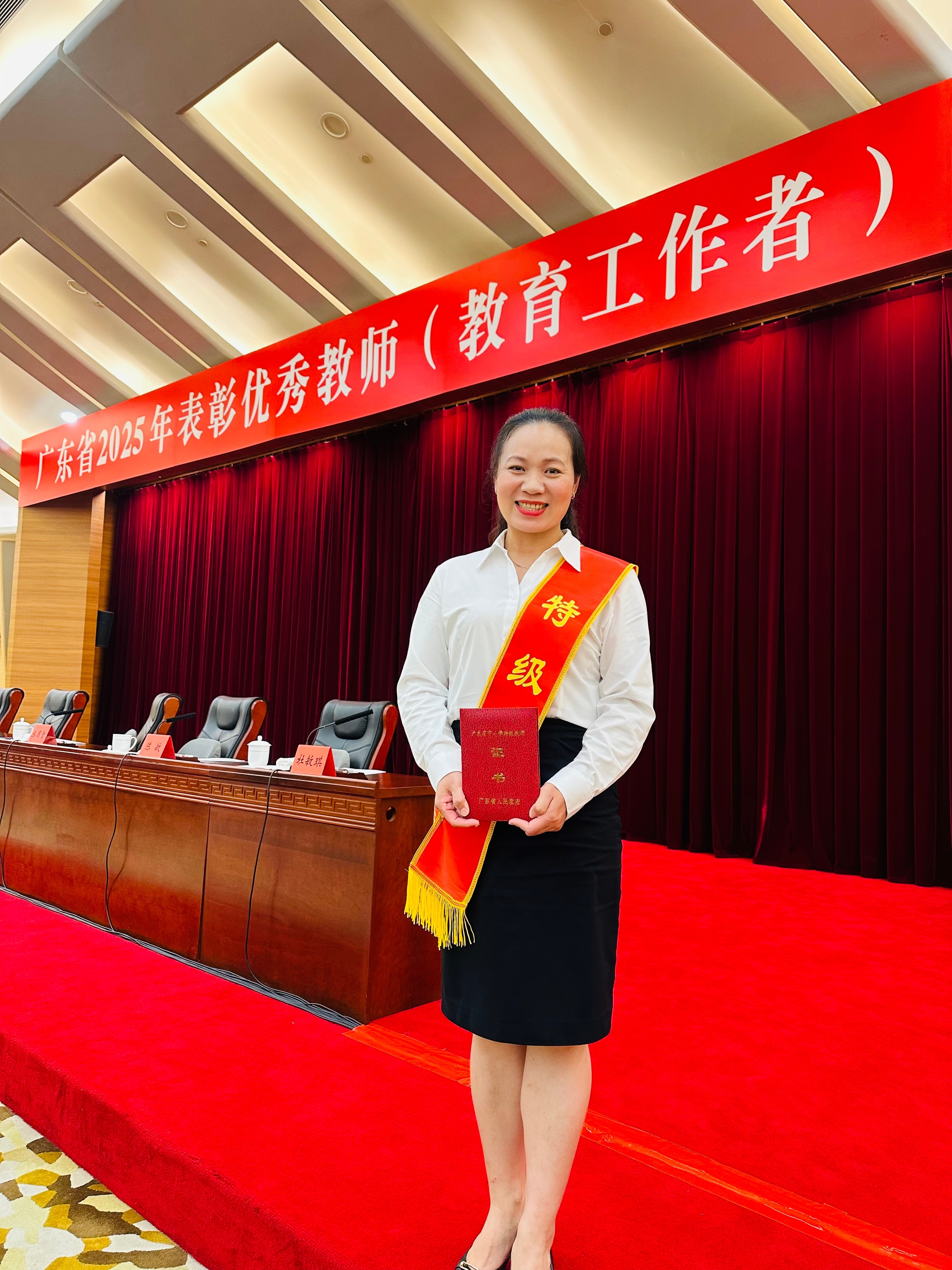 作为省市名师工作室主持人,她始终坚信“一个人走得快,一群人才走得远”。这些年,她开了 50 多场公开课和讲座,惠及 3000 多人;辅导近 40 名青年教师获省市区奖项,辅导的学生获奖达 800多人次。作为广东省劳动模范,她走进 20 多所学校宣讲,把劳模精神种进孩子心里;作为“百千万人才”名教师,她还去了西藏米林等 18 个地市送教。